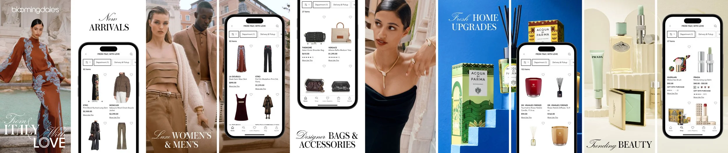 Seasonal campaigns translated Bloomingdale’s fashion-led storytelling into elevated mobile retail moments across App Store creatives and in-app events