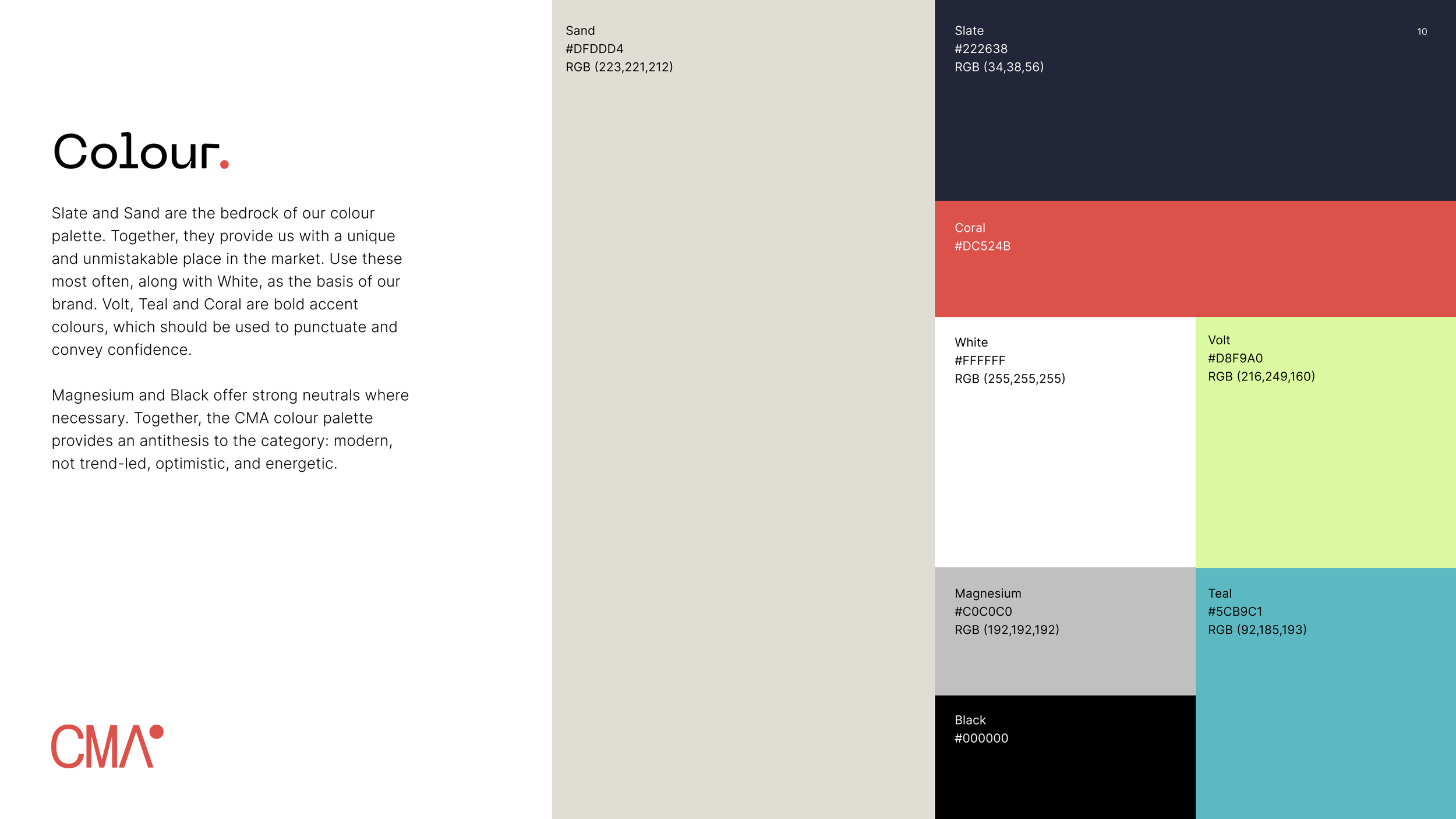 CMA had grown quickly, but its brand no longer reflected the calibre of work or strategic ambition of the business. The existing identity felt overly functional and inconsistent across touchpoints, limiting differentiation and long-term brand equity. As the company matured, it needed a clearer and more confident market position.
